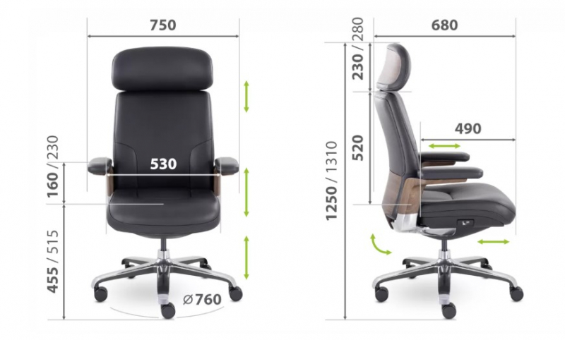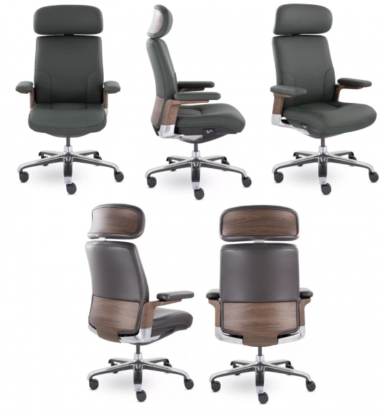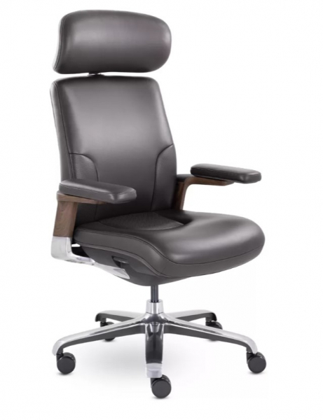 Грациозная модель кресла руководителя. Изящные изгибы, натуральная кожа, декоративные вставки из ABS-пластика с аквапринтом - все это подчеркивает эксклюзивность модели. Подголовник и подлокотники регулируются. Максимальная нагрузка 130 кг.